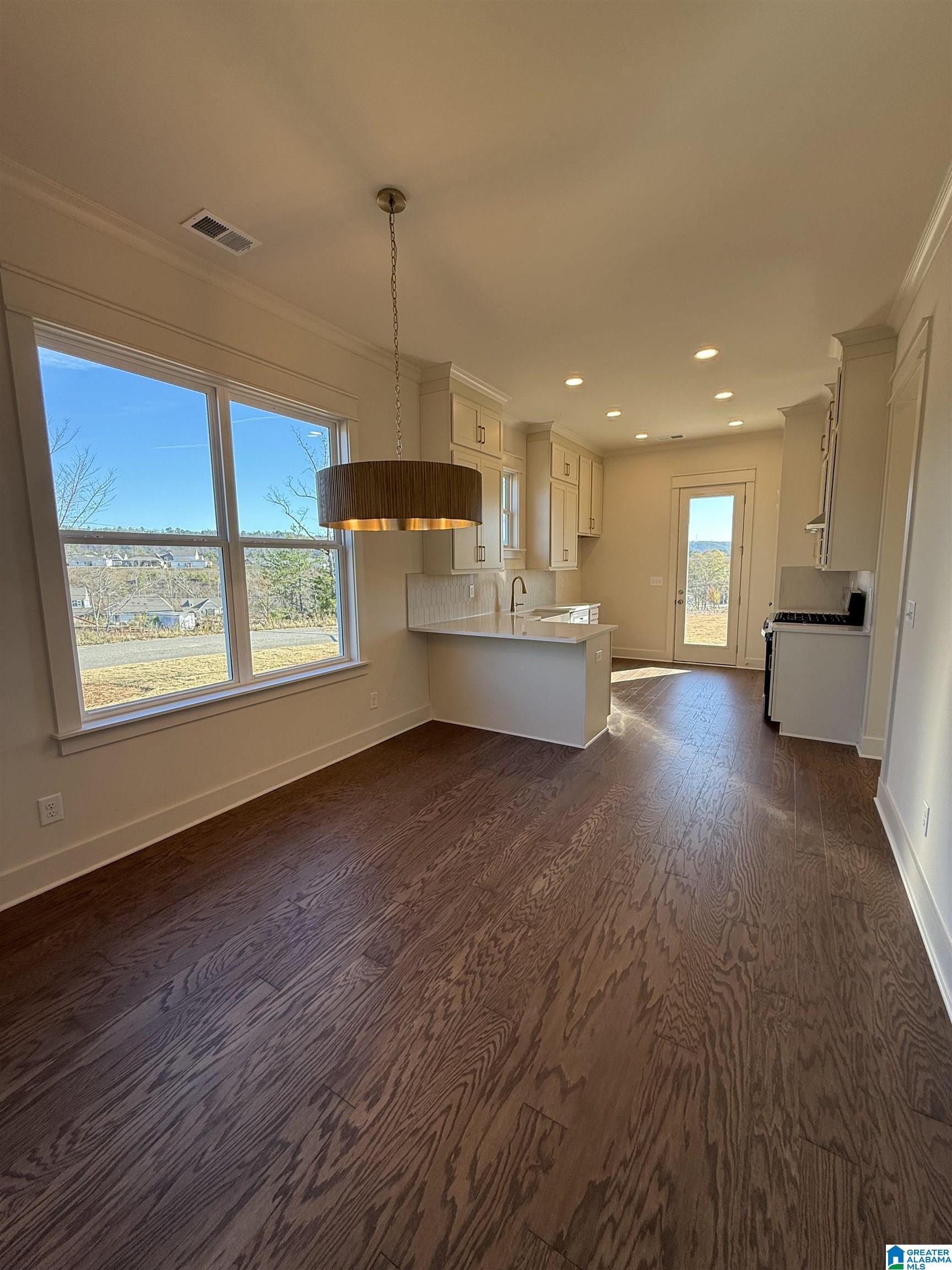This designer home has just been completed! Beautiful hardwoods are thought all the living spaces. The kitchen has cabinets to the ceiling, quartz countertops, and a gas range with stainless vented hood. The primary bedroom is on the main-level and has a huge closet. The primary bathroom is impressive with the large tiled shower and oversized double vanity. Upstairs is a large bonus room and two large guest rooms. The guest bathroom has great storage with the large vanity and linen closet. The backyard is large, and the views from the backyard are stunning! Huntley Ridge is one of Pelham’s newest communities showcasing craftsman and farmhouse style homes with sidewalks and streetlights, amazing views, and walkability to local restaurants and shops. Come tour this home today!
