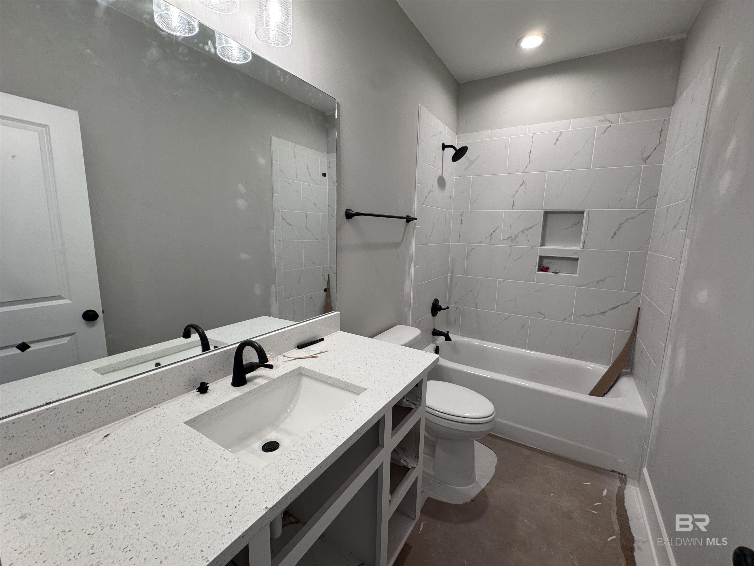 Under Construction* New construction in Timbercreek. The Rosewood plan by Tower Homes is a 4-bedroom, 3.5-bath, two-story home offering an open-concept layout with functional living spaces and modern finishes. The covered front porch leads to the entry foyer and an open-concept living area, featuring a cozy gas fireplace and a seamless flow into the dining room and chef's kitchen. The kitchen includes quartz countertops, custom cabinetry, a center island, a walk-in pantry, and stainless steel appliances, including a gas range. The primary bedroom is located on the main level and includes an en suite bath with a soaking tub, walk-in shower, private water closet, and walk-in closet. Additional main-level features include a half bath, a large laundry room, and a drop zone with access to the two-car garage. Upstairs are three additional bedrooms, one with a private en suite bath, along with ample closet space. An oversized covered back porch provides outdoor living space. Located in Timbercreek, the community offers amenities such as golf, swimming pools, tennis courts, playgrounds, and common areas. Conveniently situated near I-10, schools, shopping, and dining, this home offers a combination of new construction, location, and community amenities. Gold Fortified, the home includes a 1-year builder warranty, 10-year PWSC structural warranty, & a 1-year Termite bond with Formosan coverage. One or more principals of the selling entity are licensed real estate agents and or Brokers in AL. Est. Completion March 2026* Floor plans are for example only. Buyer to verify all information during due diligence.